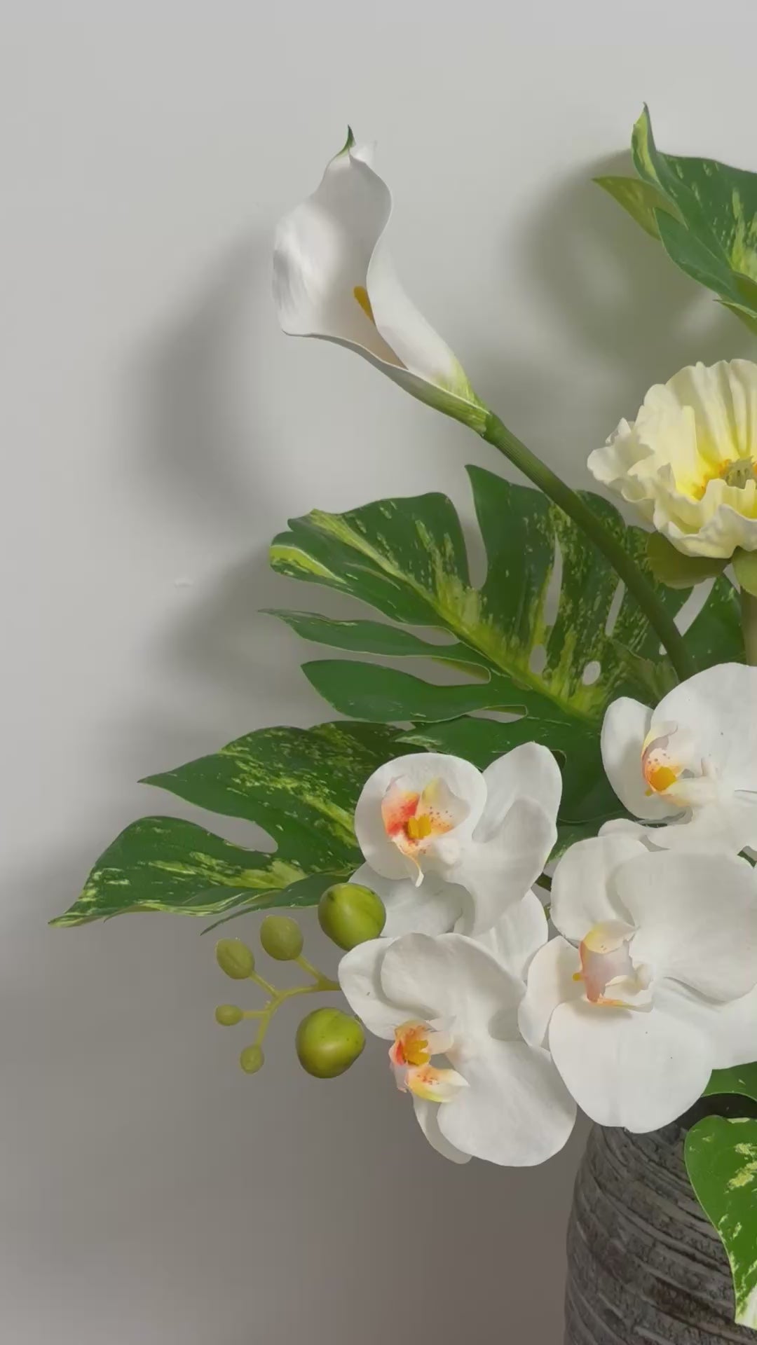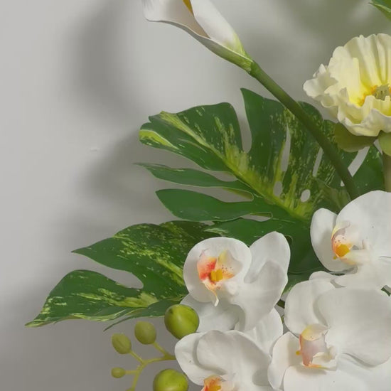 Cloud Botanica Bouquet is a tranquil arrangement of serenity and grace — where white orchids, calla lilies, tulips, and variegated greens come together in harmony.